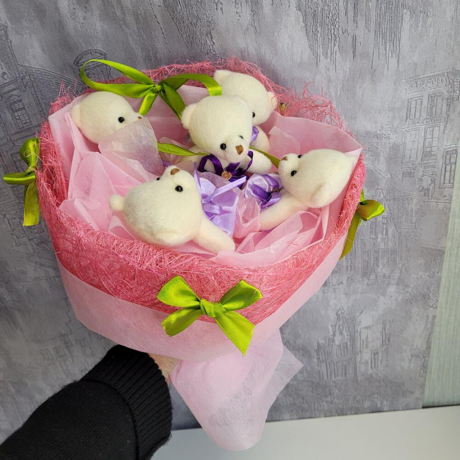 Букет из игрушек мишки 5 шт в Мурманске
